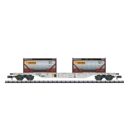 Der Tragwagen für Container ist von der Schweizer HUPAC S.A. in der Schweiz eingestellt und transportiert zwei Tank-Container der Firma Bertschi. Da die Container abnehmbar sind, kann der Wagen - wie im Vorbild auch - mit anderen Containern beladen werden.