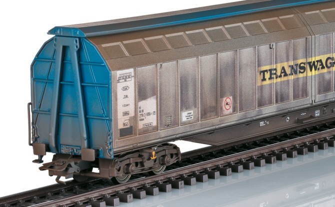 Passend zur Ragierlok der Baureihe 360 kommt dieses Wagenset exklusiv zu den mhi-Händlern. Es besteht aus drei gedeckten Güterwagen wie sie in der Epoche V für den Stückguttrasport typisch waren. Enthalten sind zwei Schiebewandwagen der Gattung Hbis-ww 299 der DB AG und ein großer Schiebewandwagen der Gattung Habins 12 der TRANSWAGGON eingestellt bei der DB AG. Alle drei Wagen sind hochwertig gealtert und stellen einen starkverwitterten Zustand dar. Ob Schmutz oder Ausbesserungen, hier wurden alle Details nachgestellt.
